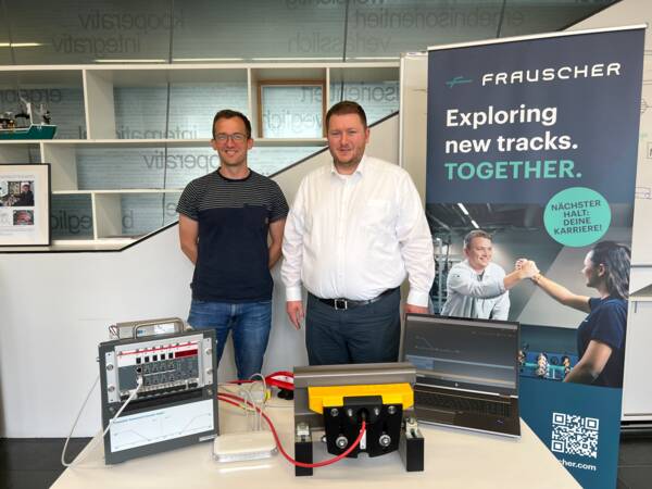 Am Foto von links nach rechts. Dr. Dominik Fasthuber (Frauscher), DI Adrian Wagner (Carl Ritter von Ghega Institut FH St. Pölten)